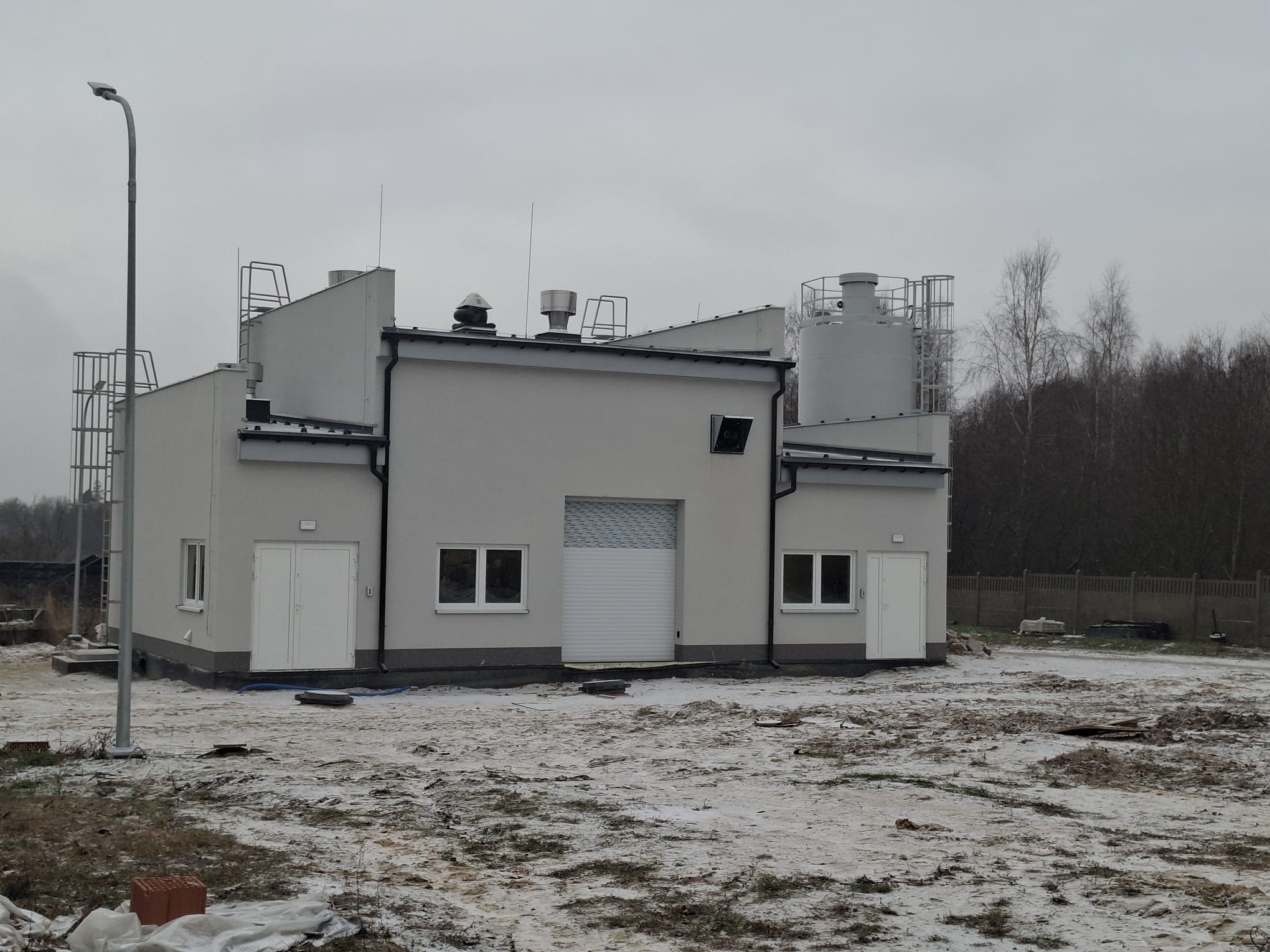 - budowę nowego budynku obróbki osadu wyposażonego w linię technologiczną odwadniania i higienizacji osadu,